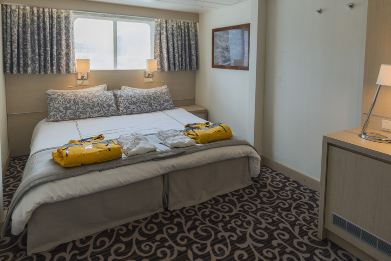Approximately 200 sq. ft. (19 sq. m) in size, these cabins have one double bed, and a picture window (the view is obstructed by the lifeboats). Located on the Captain’s Deck these cabins have a private bathroom with shower. A refrigerator, TV, and DVD player are included in each cabin.